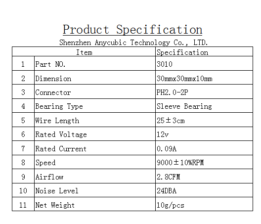 - Velikost ventilatorja DC: 30x30x10 mm